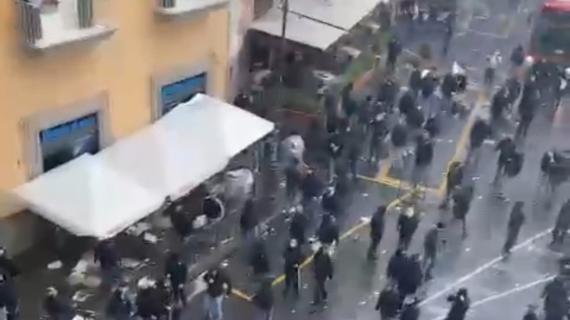 Dopo la guerriglia urbana, la calma (per lo meno apparente). Perché sono continuati fino a tarda serata gli scontri fra i tifosi del Napoli e le Forze dell’Ordine per provare a venire a contatto con i supporter dell’Eintracht: sono stati utilizzati lacrimogeni e idranti in via Partenope e in via Chiatamonte, fra il lungomare dinanzi a Castel Dell’Ovo e il viale dietro il Royal Excelsior, albergo ove sono stipati i tedeschi. A questo punto la situazione è tranquilla, negli scorsi minuti c’è stato il cambio della guardia e il nervosismo delle scorse ore pare passato. “Per ora”, il commento di chi è preposto alla sicurezza. C’era l’intenzione di non fare dormire i tedeschi a Napoli, ma la guerriglia (con lancio di sampietrini e bombe carte da una parte, l’utilizzo di idranti e lacrimogeni dall’altra) ha fatto desistere il proposito di trasferirli fra Salerno e Roma, oppure Capodichino. I tifosi ospiti dormono in questo modo a Napoli, da comprendere se durante la notte ci saranno nuovi raid oppure se domattina ci possa essere un agguato nel passaggio con le navette, come già visto nei due movimenti precedenti.