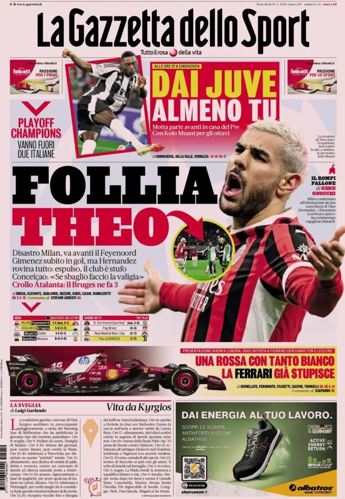 Milan disaster. They take the lead with Gimenez against Feyenoord, but Hernandez ruins everything. Sent off, the club is fed up. Conceiçao: ‘If I make mistakes, I prepare the luggage.’