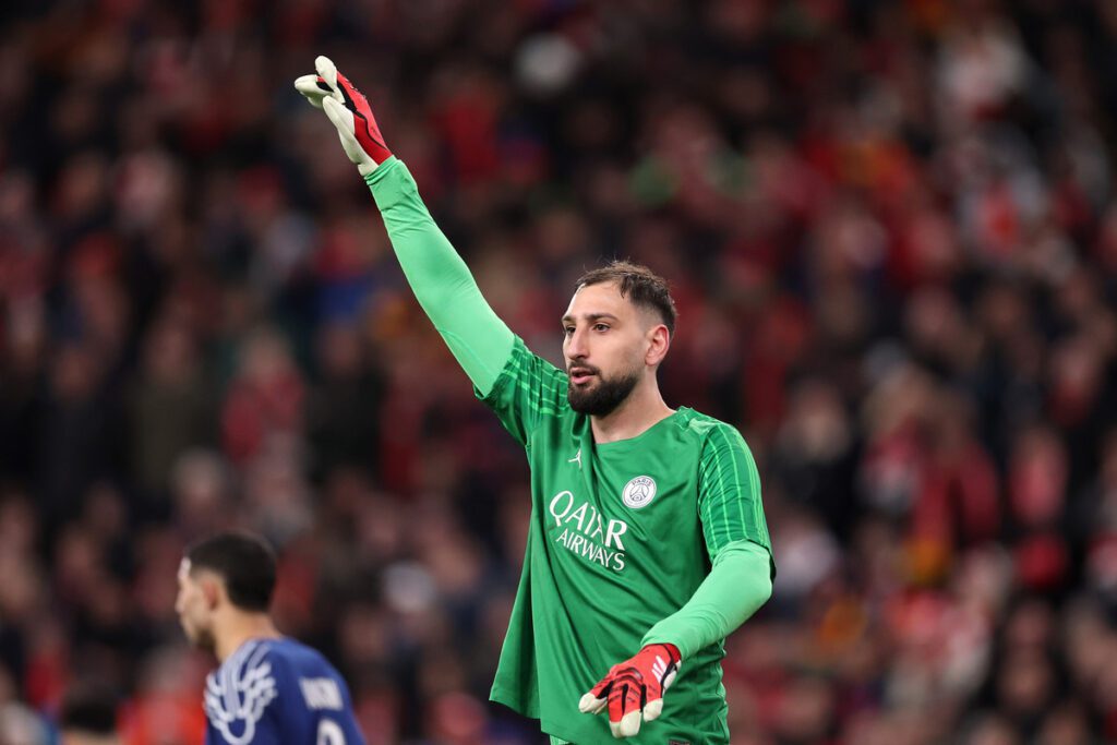 LIVERPOOL, ENGLAND – MARCH 11: Gianluigi Donnarumma of Paris Saint-Germain during the UEFA Coppa Campioni 2024/25 UEFA Coppa Campioni 2024/25 Round of 16 Second Leg match between Liverpool FC and Paris Saint-Germain at Anfield on March 11, 2025 in Liverpool, England. (Photo by Julian Finney/Getty Images)