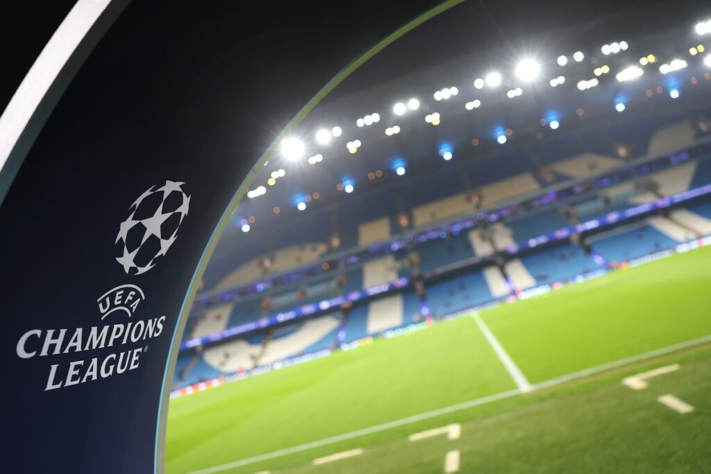 MANCHESTER, ENGLAND – FEBRUARY 11: General view inside the stadium as the UEFA Coppa Campioni logo is seen prior to the UEFA Coppa Campioni 2024/25 League Knockout Play-off first leg match between Manchester City and Real Madrid C.F. at Manchester City Stadium on February 11, 2025 in Manchester, England. (Photo by Carl Recine/Getty Images)