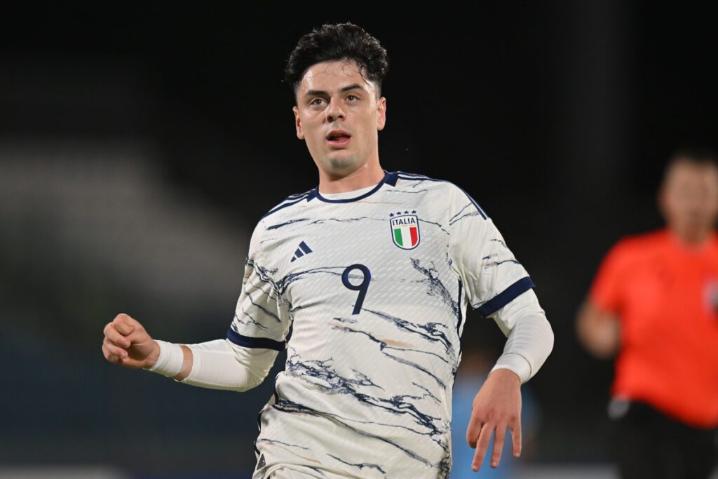 SAN MARINO, ITALY – NOVEMBER 16: Giuseppe Ambrosino of Italy U21 during the UEFA Under21 Euro Qualifier match between San Marino U21 and Italy U21 at Serravalle on November 16, 2023 in San Marino, Italy. (Photo by Alessandro Sabattini/Getty Images)
