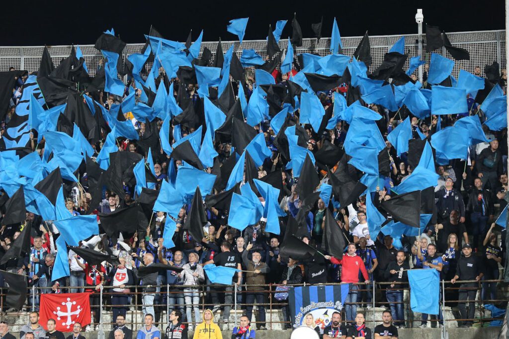 LIVORNO, ITALY – OCTOBER 26: Fans of Pisa SC during the Serie B match between AS Livorno and Pisa SC at Stadio Armando Picchi on October 26, 2019 in Livorno, Italy. (Photo by Gabriele Maltinti/Getty Images)