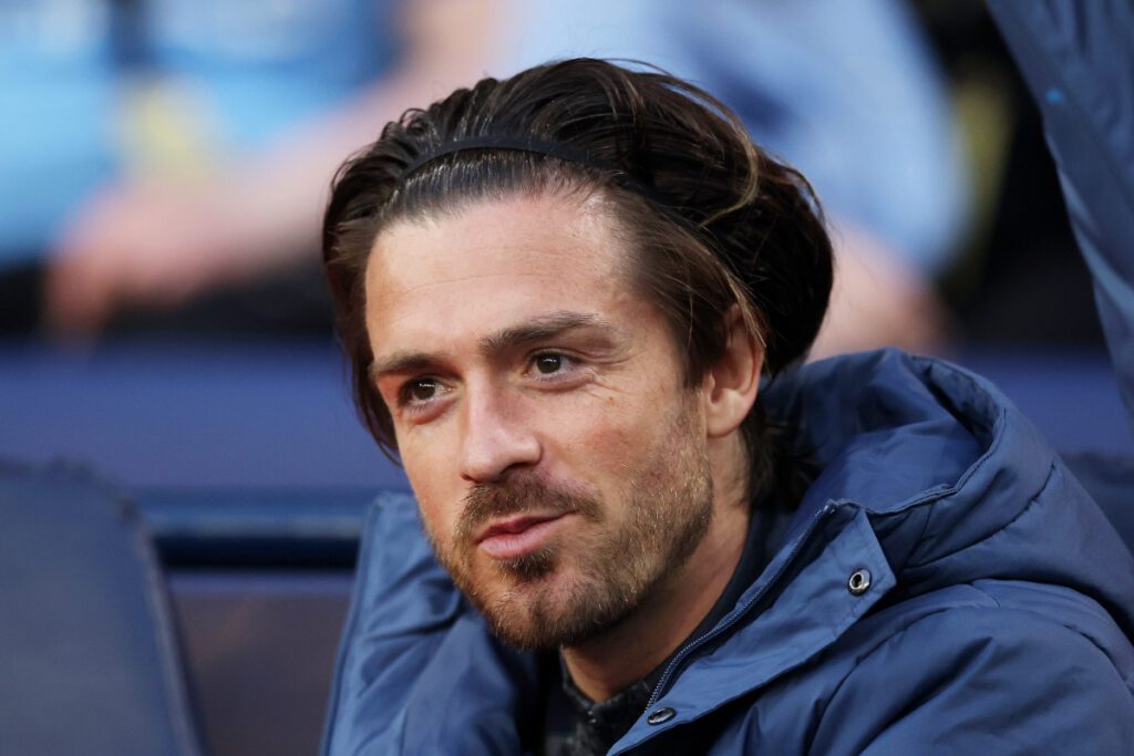 MANCHESTER, ENGLAND – APRIL 22: Jack Grealish of Manchester City looks on from the substitutes bench prior to the Premier League match between Manchester City FC and Aston Villa FC at Etihad Stadium on April 22, 2025 in Manchester, England. (Photo by Carl Recine/Getty Images)