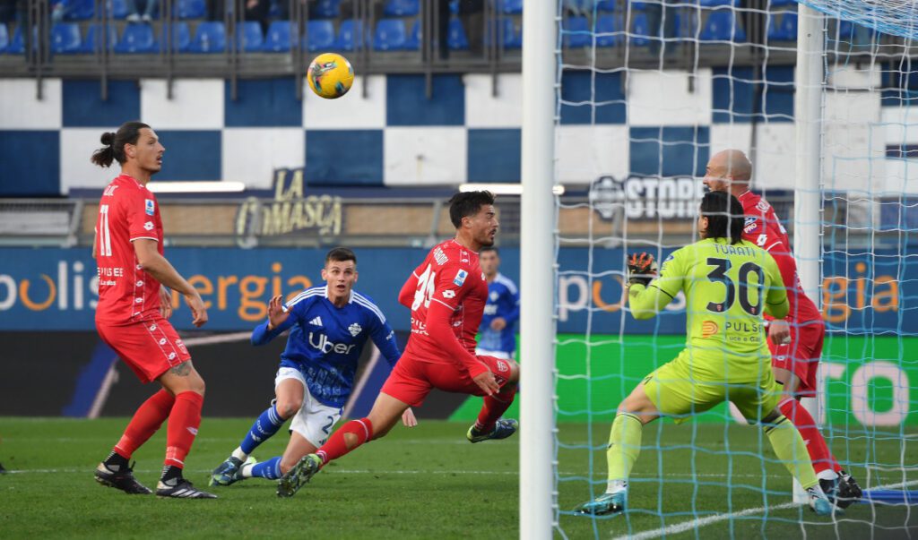 COMO, ITALY – NOVEMBER 30: Yannik Engelhardt of Como 1907 scores the opening goal during the Serie A match between Como and Monza at Stadio G. Sinigaglia on November 30, 2024 in Como, Italy. (Photo by Chris Ricco/Getty Images)